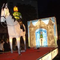 Neben dem Untergestell werden auch große Figuren benötigt. Alles wird mit Papier und Kleister an einem Drahtgestell befestigt und von innen heraus elektrisch beleuchtet. Den Strom hierzu erzeugt ein Generator.